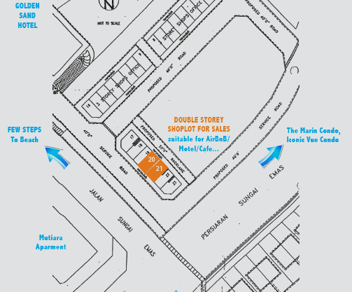 EXTENDED SHOPLOTs For SALE at Batu Ferringhi 2 JOINED DOUBLE STOREYs MID TERRACE SHOPLOTs Face…